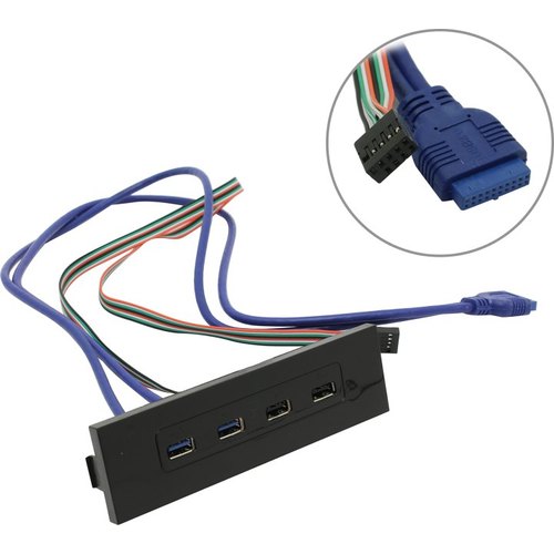 Устанавливаемая в отсек 5.25" панель с 2 портами USB 3.0 и 2 портами USB 2.0; подключается к 20-пиновому и 10-пиновому внутренним разъемам на материнской плате |
